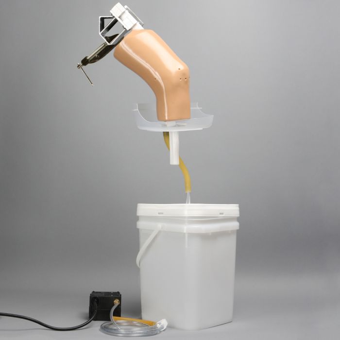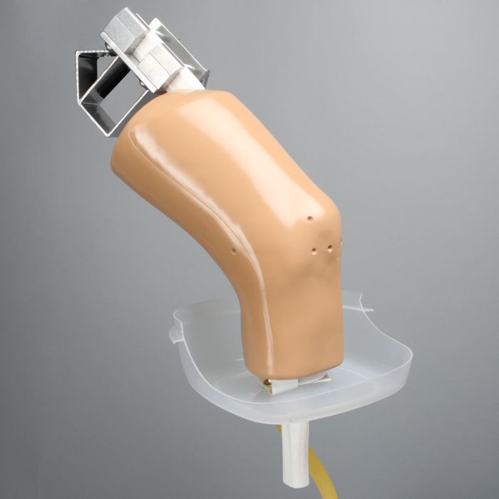 Анатомически точное колено для выполнения диагностики и отработки различных техник артроскопии. В комплектацию входит дистальный отдел бедра, проксимальный отдел большеберцовой кости со съемным мениском и коленной чашечкой. При артроскопических процедурах можно выполнять варусные и вальгусные манипуляции и разгибание. Можно использовать с жидкостью. В комплект входят трубки жидкостного насоса, зажима для стола и емкость для жидкости. 110 В перем. тока.
