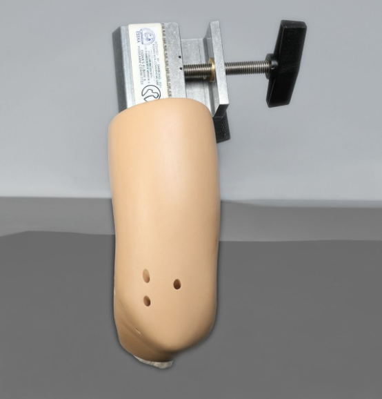Фантом локтя для артроскопии с многоразовыми портами можно использовать для отработки диагностических и хирургических манипуляций. Модель имеет 7 готовых портов для полной визуализации суставной щели и обеспечения многократной отработки манипуляций, благодаря чему отсутствует необходимость делать новые проколы для ввода артроскопа. Сменные вставки могут имитировать эрозию хряща головки лучевой кости, перелом головки лучевой кости, наличие свободных костных отломков. Также имеется модифицированный проксимальный конец плечевой кости для фиксации в зажиме.