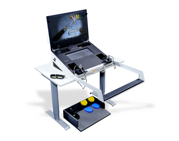 ФлексВР — это портативная учебная платформа, предназначенная для обучения базовым и продвинутым навыкам роботизированной хирургии студентов-медиков и опытных хирургов. ФлексВР позволит быстро освоить навыки роботизированной хирургии, такие как манипулирование инструментами, управление камерой, захват, контроль энергии, работа иглодержателем и наложение швов.