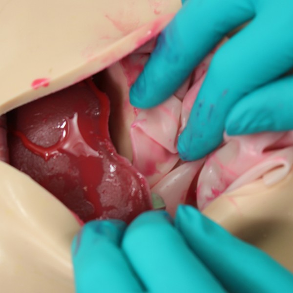 - герметичную брюшную полость с реалистично выполненными тканями и возможностью имитации диффузного кровотечения
