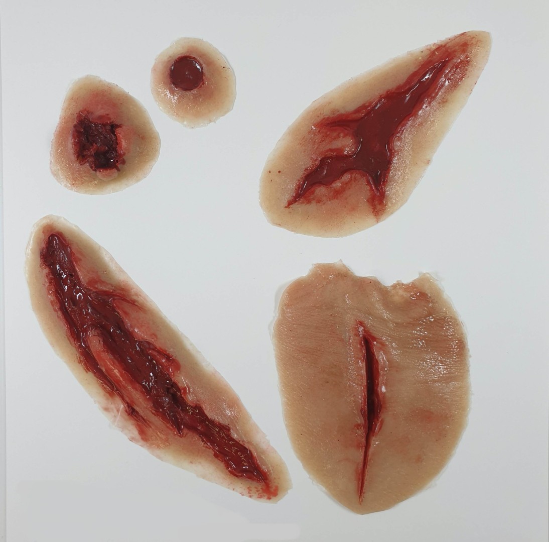 Комплект накладных муляжей: небольшие раны — реалистичные учебные модели для тренировки первой помощи и отработки медицинских манипуляций. Удобство, практичность и высокая визуальная достоверность помогут эффективно освоить навыки оказания доврачебной помощи.