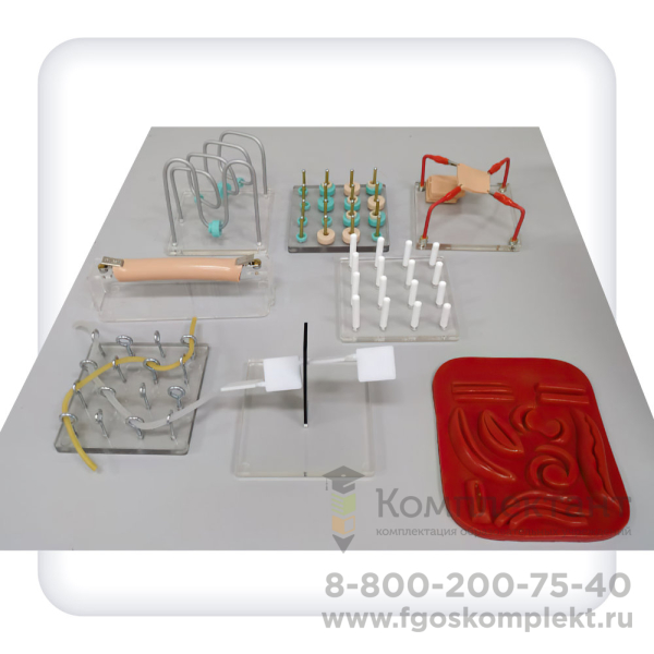 Комплект из 8 пособий для отработки практических эндохирургических навыков позволяет отработать важные лапароскопические навыки: