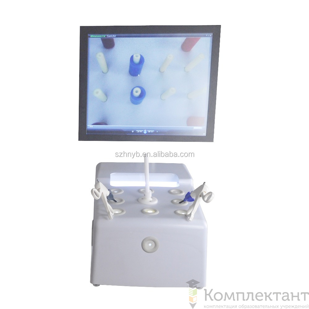 Усовершенствованный лапароскопический тренажер LAP-A состоит из блока моделирования лапароскопической тренировки, USB-видеосвязи, устройства сбора изображений (автофокус Ultra HD), 19-дюймового сенсорного экрана "все в одном", учебного модуля, хирургических инструментов, что позволяет обучающемуся приобретать базовые навыки лапароскопии.