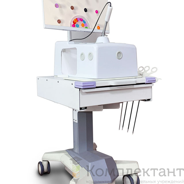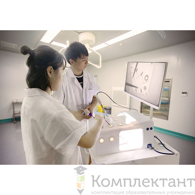 Рабочее пространство освещается холодным светодиодным светом, имитирующим цветовую температуру и ощущение освещенности в реальной клинической эндоскопической среде