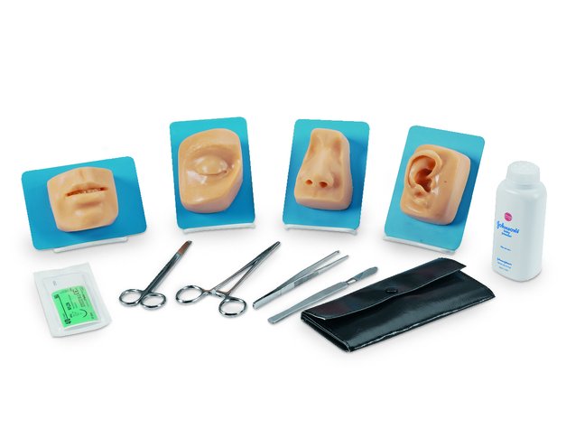 В набор входят 4 муляжа (рот, глаз, нос, ухо) на подставках и набор инструментов для наложения швов.Вы можете самостоятельно выполнять разрезы любой формы и глубины для последующего наложенияшвов. Материал, из которого выполнены муляжи, имеет реалистичную на ощупь структуру и позволяетвыполнять разрезы и накладывать швы многократно.