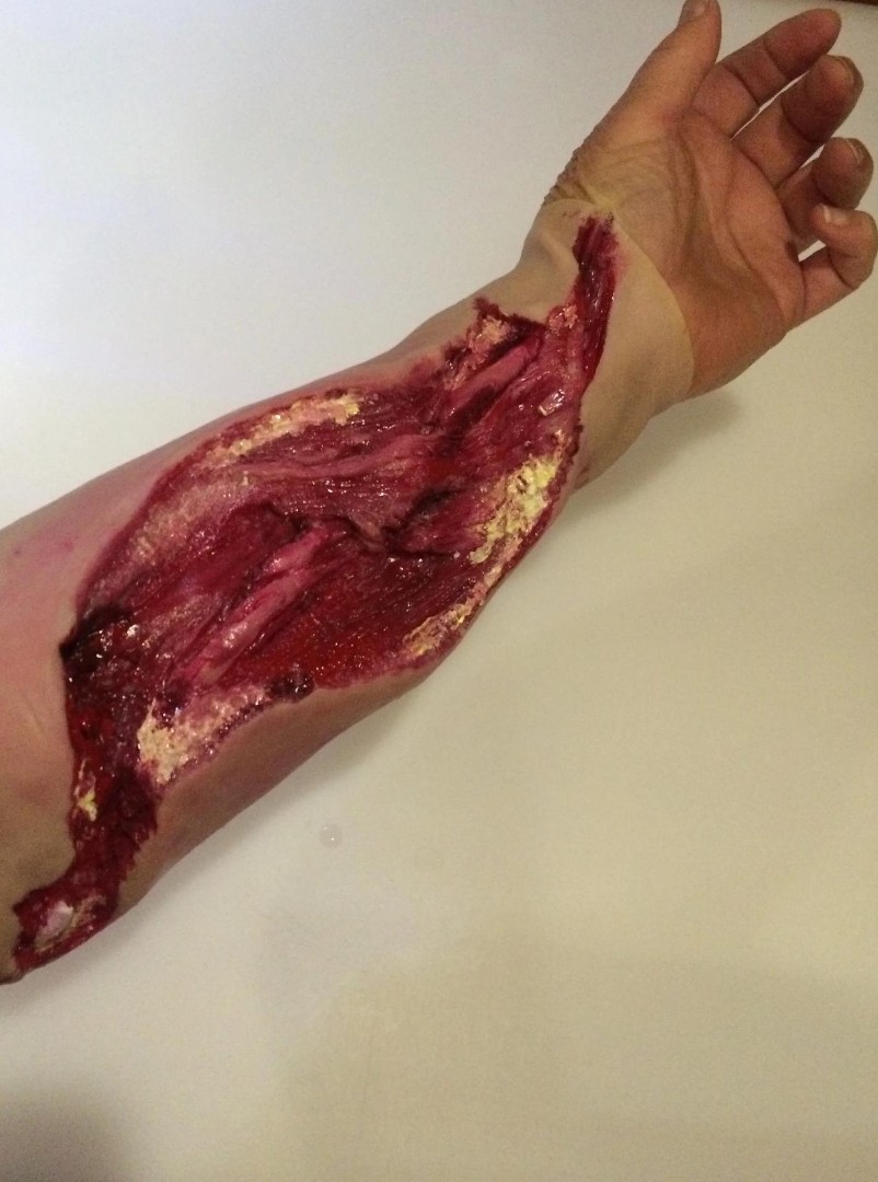 - При необходимости муляж можно покрыть имитированной кровью, грязью, сажей или специальным гримом