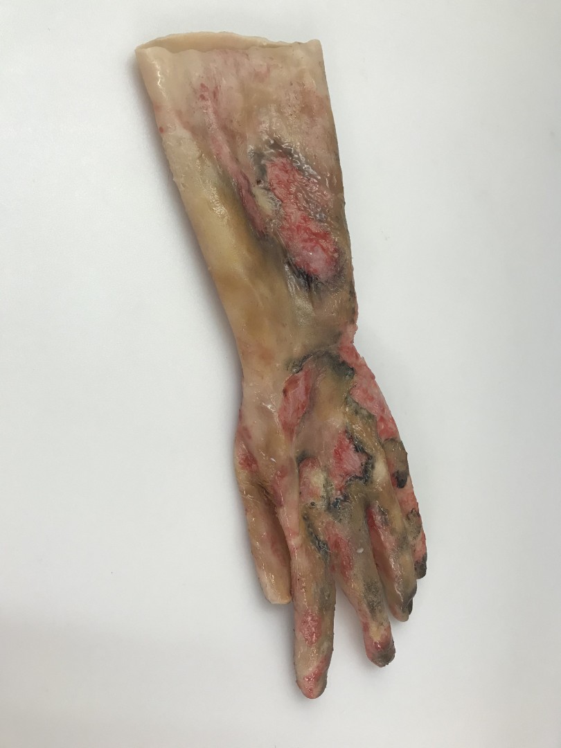 - Данный муляж воспроизводит внешний вид кожи руки с термическим ожогом