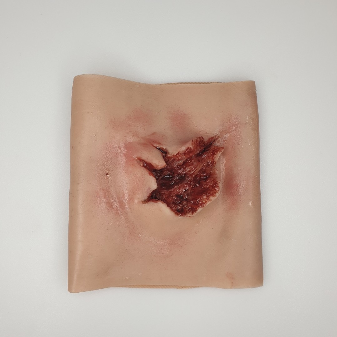 Реалистичный накладной муляж предназначен для использования в симуляционных сценариях по оказанию помощи при травмах