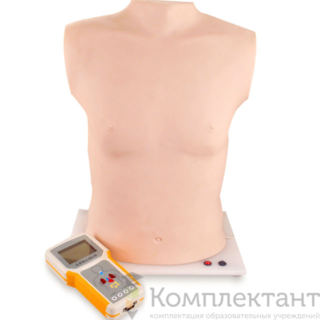 Тренажер для обучения аускультации и пальпации представляет собой торс взрослого человека, установленный на подставку.