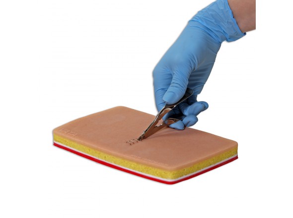 Каждый отдельный слой узнаваем и имеет анатомически достоверную окраску, упругость, прочность и тактильные характеристики. Уникальные материалы, используемые в наборе для наложения швов, позволяют отрабатывать навыки наложения поверхностных, субкутикулярных и сложных швов для глубоких ран, а при подходящем натяжении шов не прорвет ткань. Подушка для наложения швов имитирует движение настоящей человеческой ткани при проколе или натяжении шва. С кожи для практики наложения швов можно удалять швы, и этот участок можно использовать еще неоднократно.