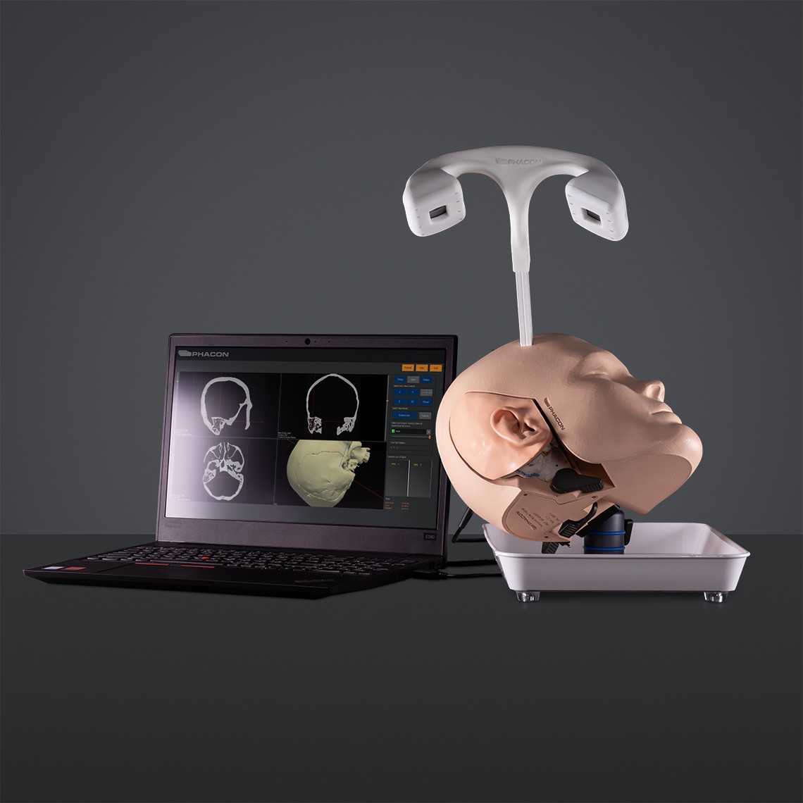 Тренажер для отработки навыков хирургии височной кости предоставляет возможность отработки навыков хирургии среднего уха и внутреннего уха с использованием тренажеров с имитацией различных особенностей анатомических структур. Тренажер позволяет освоить практические навыки применения хирургических инструментов. Одновременно обеспечивается навигация по соответствующим КТ-снимкам пациента в программном обеспечении. Риск повреждения анатомических структур во время обучения автоматически выявляется подключенным программным обеспечением.