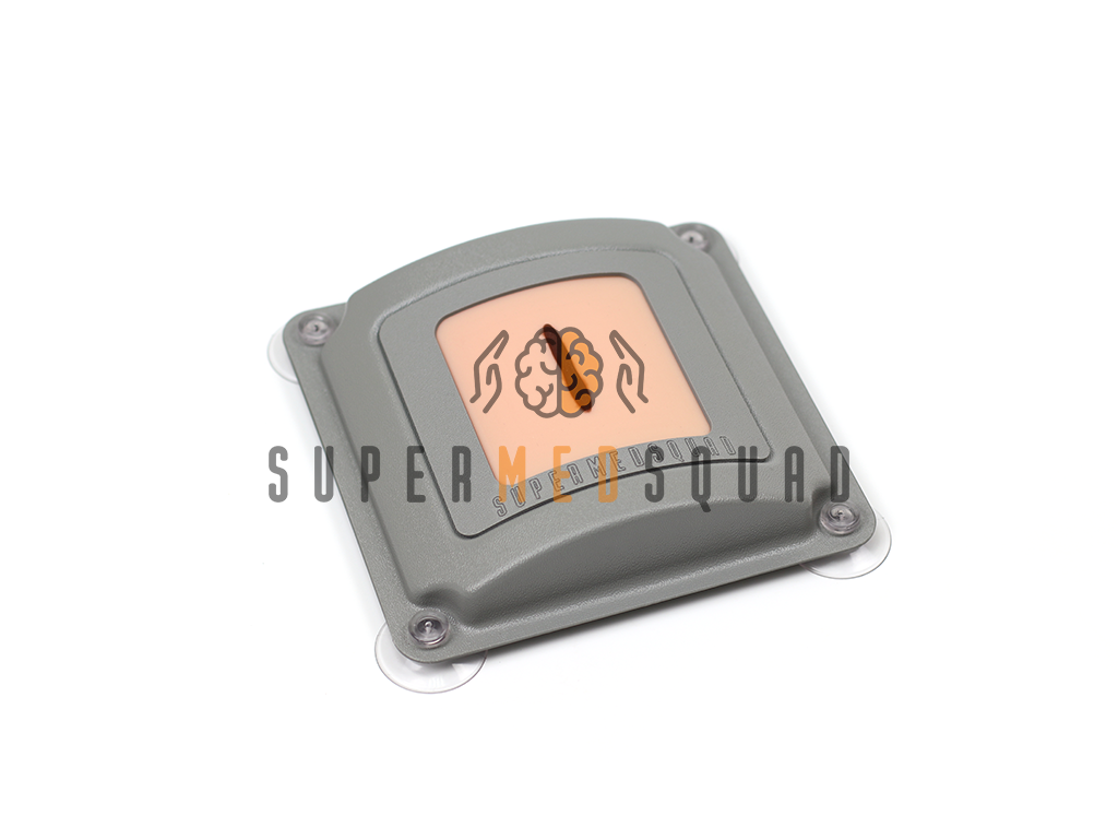 - Для установки фрагмента имитации кожного покрова с целью фиксации на рабочей поверхности и создания напряжения материала для формирования зияния раны при разрезе используется специально предназначенная подложка на 4-х присосках (опционально)
