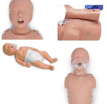 Реалистично выполненные манекен младенца (Дэни) и торс ребенка (Рик) имеют все анатомические ориентиры для отработки СЛР. Манекен и торс имеют сменные одноразовые дыхательные пути с лицевой маской, которые легко заменить. За счет этого не требуется специальной антисептической обработки и дезинфекции.