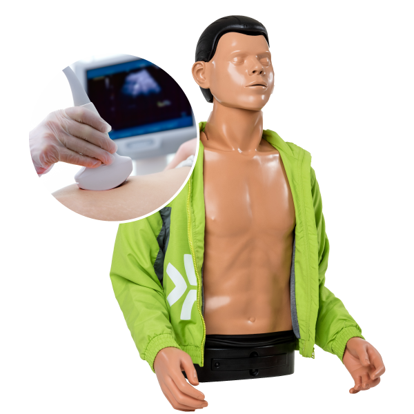 Фантом дыхания и наружного массажа сердца Ambu Man Ultrasound Wi-Fi — интерактивное учебное оборудование с беспроводной связью, позволяющее эффективно отрабатывать сердечно-лёгочную реанимацию и дыхательные техники прямо в классе или клинике.