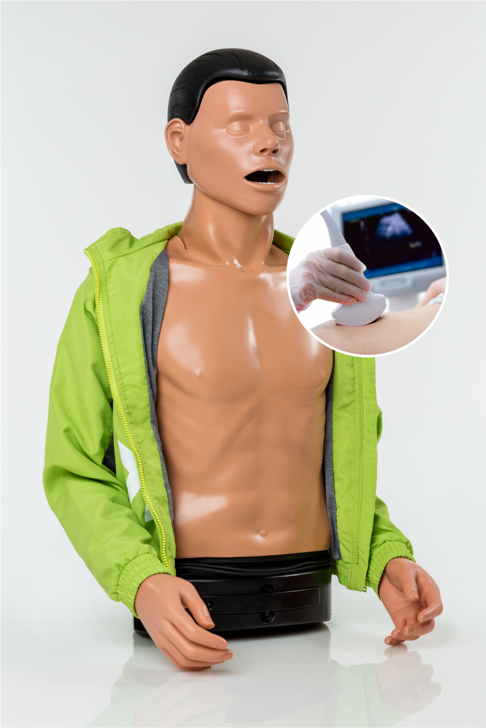 Тренажер Ambu AIR Man Ultrasound оснащен многофункциональным передовым ультразвуковой модулем УЗИ, предназначенным для отработки навыков диагностики в движении. Данный модуль представляет собой: