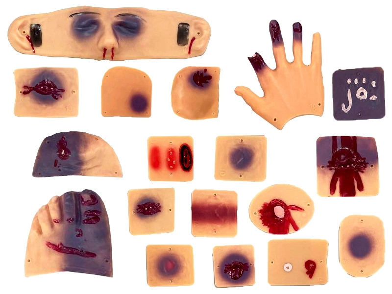 2. Многофункциональность: имитаторы ран позволяют отработать навыки обработки 18 различных типов ран, включая ушибы, раны, ожоги и переломы, обеспечивая всестороннюю подготовку.