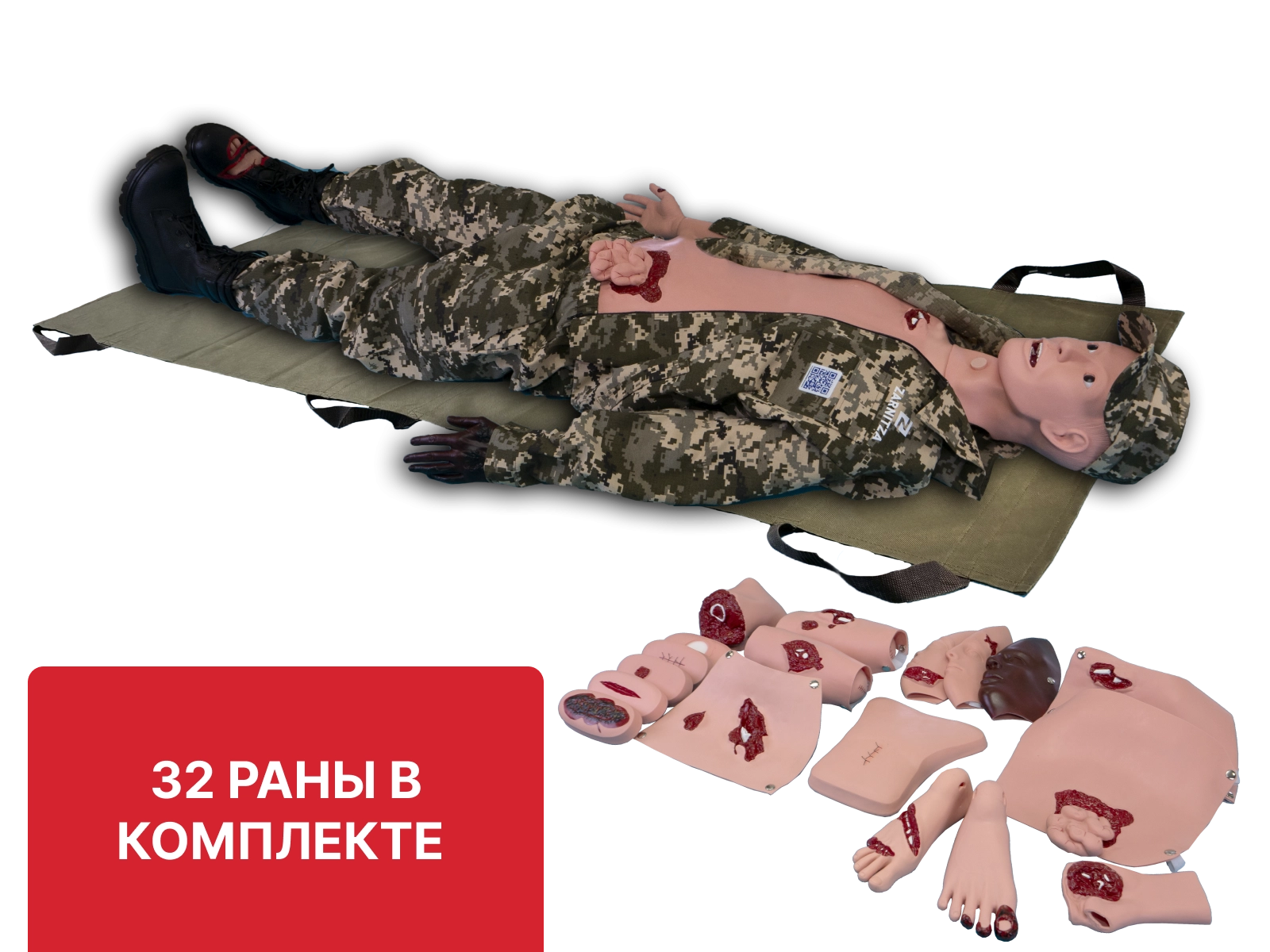 накладные травмы и ранения различной степени тяжести толщиной не менее 5 мм с возможностью замены и установки на любую часть тела тренажера для отработки первичных навыков оказания первой помощи.