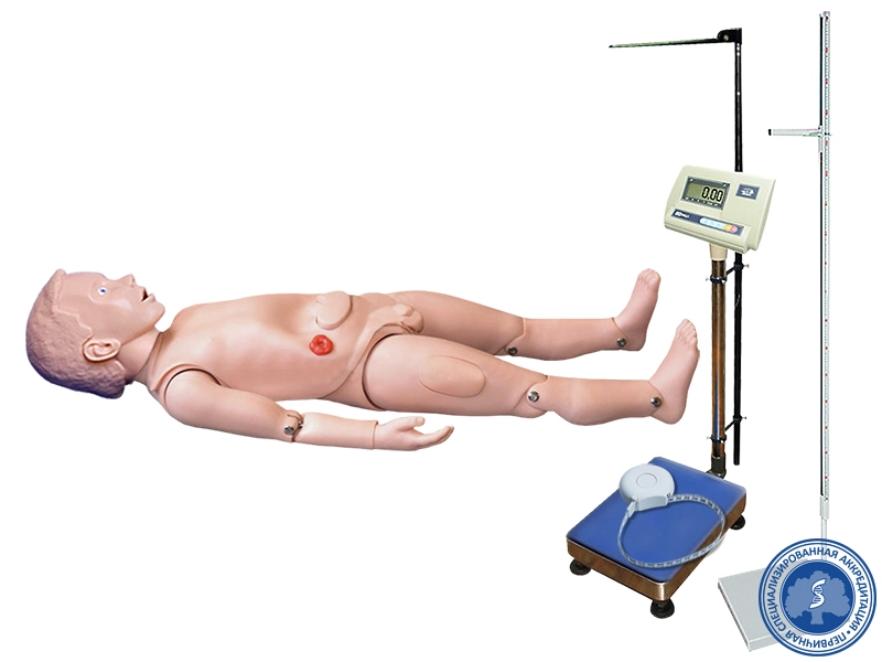 Манекен ребёнка предназначен для отработки практических навыков ухода (в рамках программы первичной аккредитации по специальности "Педиатрия") и представляет собой анатомическую модель ребёнка 3х лет. Шея, руки и ноги подвижны во всех суставах. Модель торса выполнена из материалов, визуально и пальпаторно имитирующих ткани человеческого тела. Конструкция тренажера предусматривает отработку следующих навыков ухода: