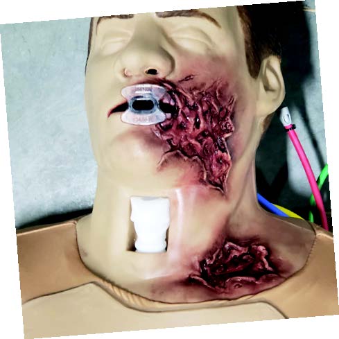 • имитация проникающего ранения грудной клетки позволяет накладывать окклюзионную повязку