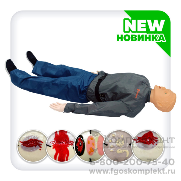 Робот-тренажер представляет собой модель человека в полный рост и предназначен для отработки первой помощи пострадавшим и травмированным при дорожно-транспортном происшествии, катастрофах природного и техногенного характера. Тренажер рекомендован для подготовки спасательных служб, сотрудников предприятий и нефтеперерабатывающих заводов.
