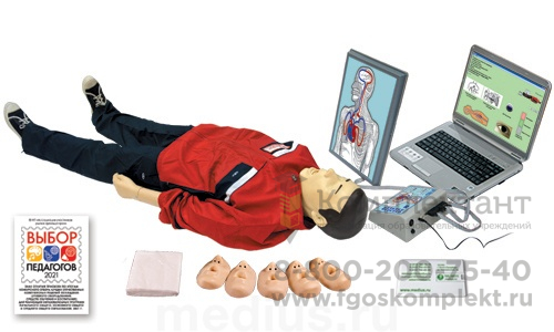 Т12к "Максим III-01", тренажёр сердечно-лёгочной и мозговой реанимации, с учебным и 4-мя тестовыми режимами, обучающей компьютерной анимационной программой, цифровым датчиком объёма и скорости вдыхаемого воздуха, с пультом контроля управления