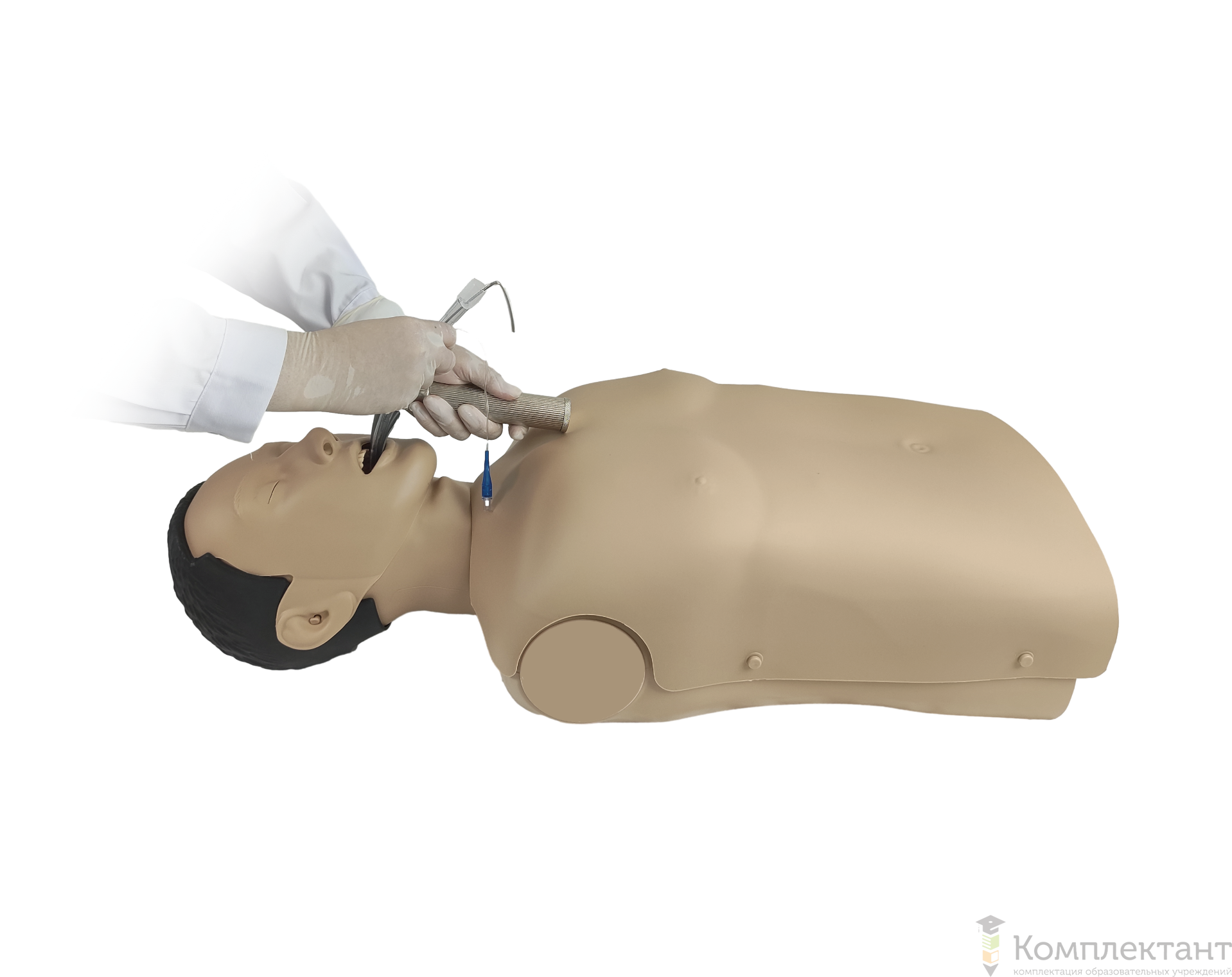 Тренажер имеет подвижную челюсть и шею, реалистичное строение полости рта и глотки. При правильном выполнении интубации видно край надгортанника и голосовую щель. Под съемной кожей пальпируются ребра, ключицы и грудина. Сменные воздушные мешки в области легких заполняются воздухом при выполнении СЛР, имитируя экскурсию грудной клетки.