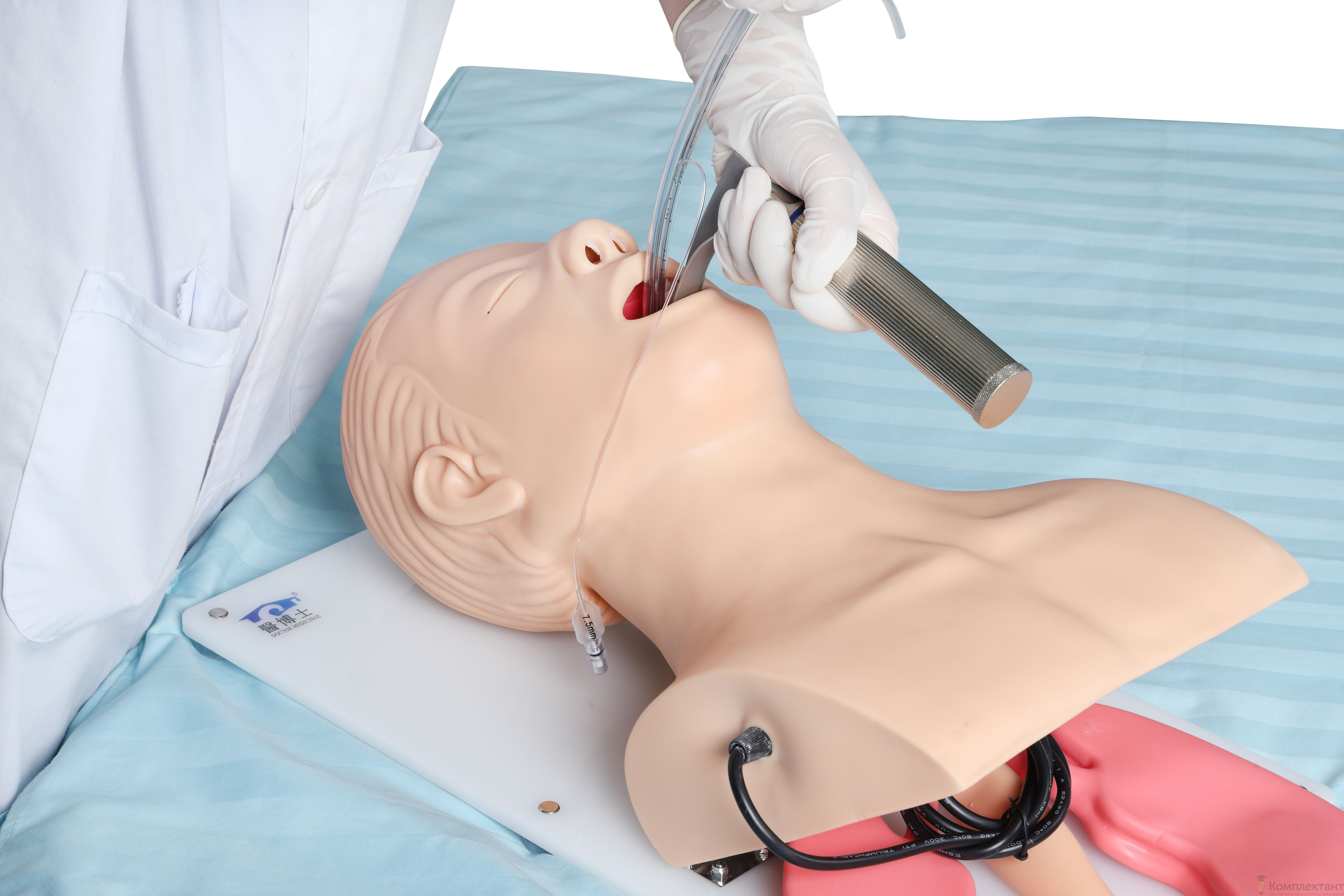 - Тренажер интубации представляет собой фантом верхней части туловища человека с головой, установленный на подставку