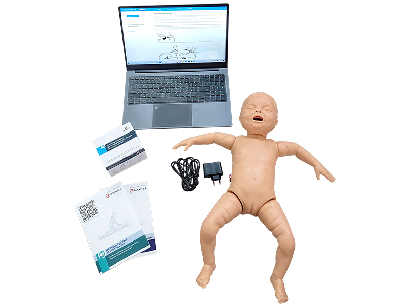 Тренажер-манекен представляет собой полноростовую модель новорожденного ребенка и предназначен для отработки навыков оказания неотложной медицинской помощи при внезапной остановке сердца у детей первого года жизни.