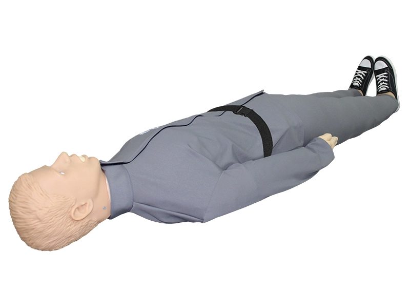 - подготовка пострадавшего к проведению реанимационных мероприятий, при выполнении упражнения необходимо расстегнуть или ослабить поясной ремень манекена (опционально), а также придать голове правильное положение;