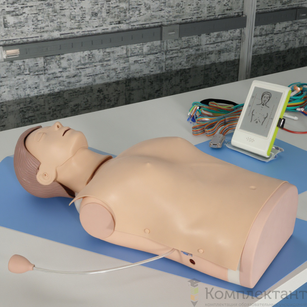 - Тренажер представляет собой модель тела взрослого мужчины для отработки навыков сердечно-легочной реанимации