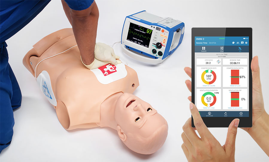 Обратная связь с тренажером в реальном времени при выполнении СЛР или во время работы в обучающем режиме для самостоятельной отработки навыков восстановления сердцебиения.